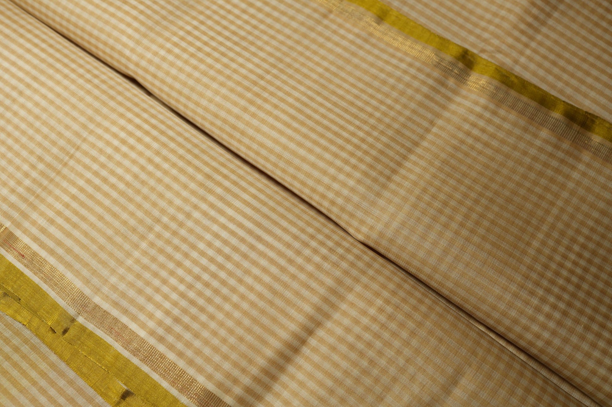 Ivory & Olive Green Handwoven Silk-Cotton Saree with Fine Checks