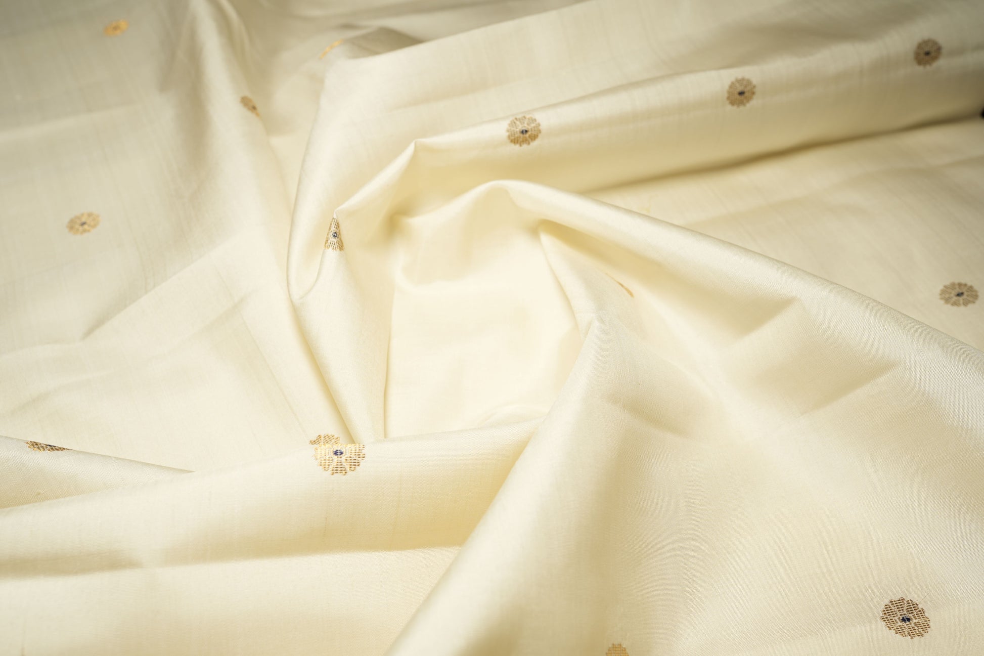 ✨ Design: Gold Zari Round Buttas on Solid Silk Body